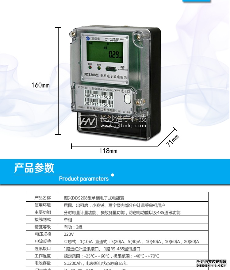 杭州海興DDS208單相電子式電能表