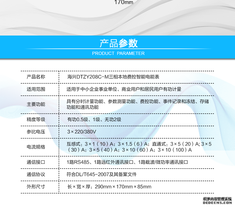 杭州海興DTZY208C-M型三相四線本地費控智能電能表(模塊)
