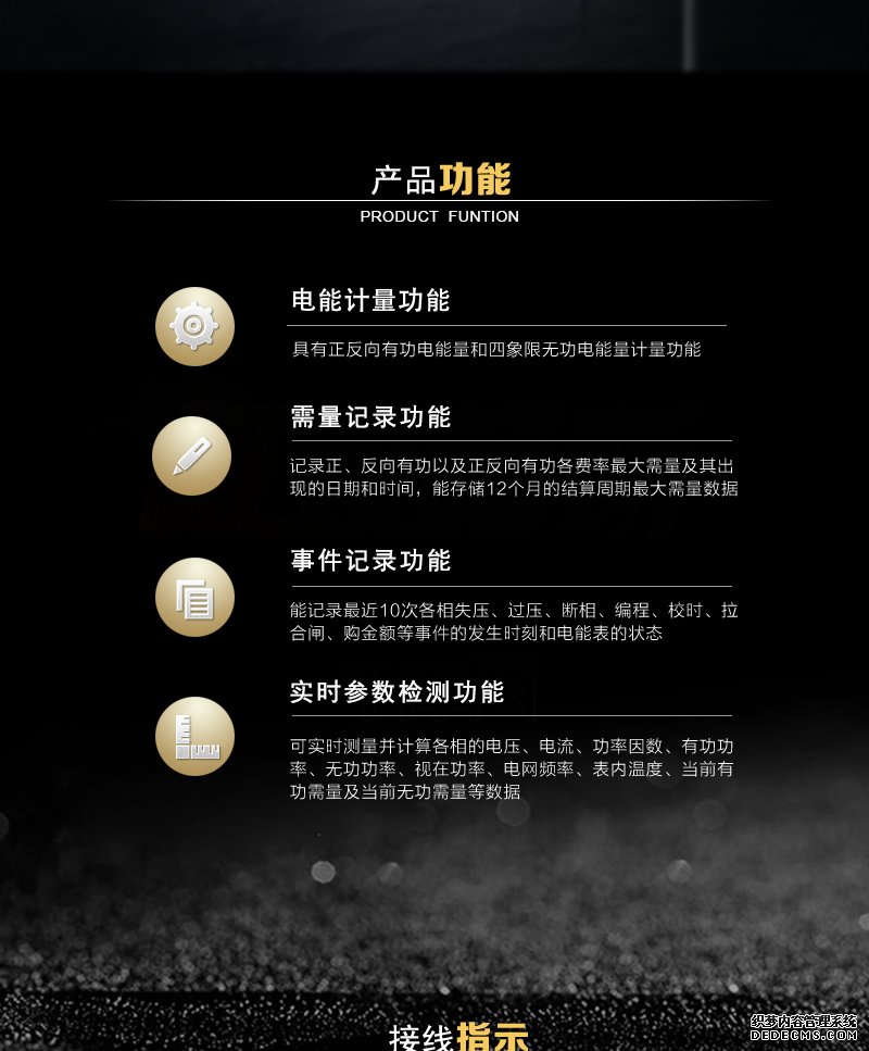 - 主要功能:有功,功率因素,有功功率,無功功能,視在功率,四象限無功,電壓,事件報警,需量