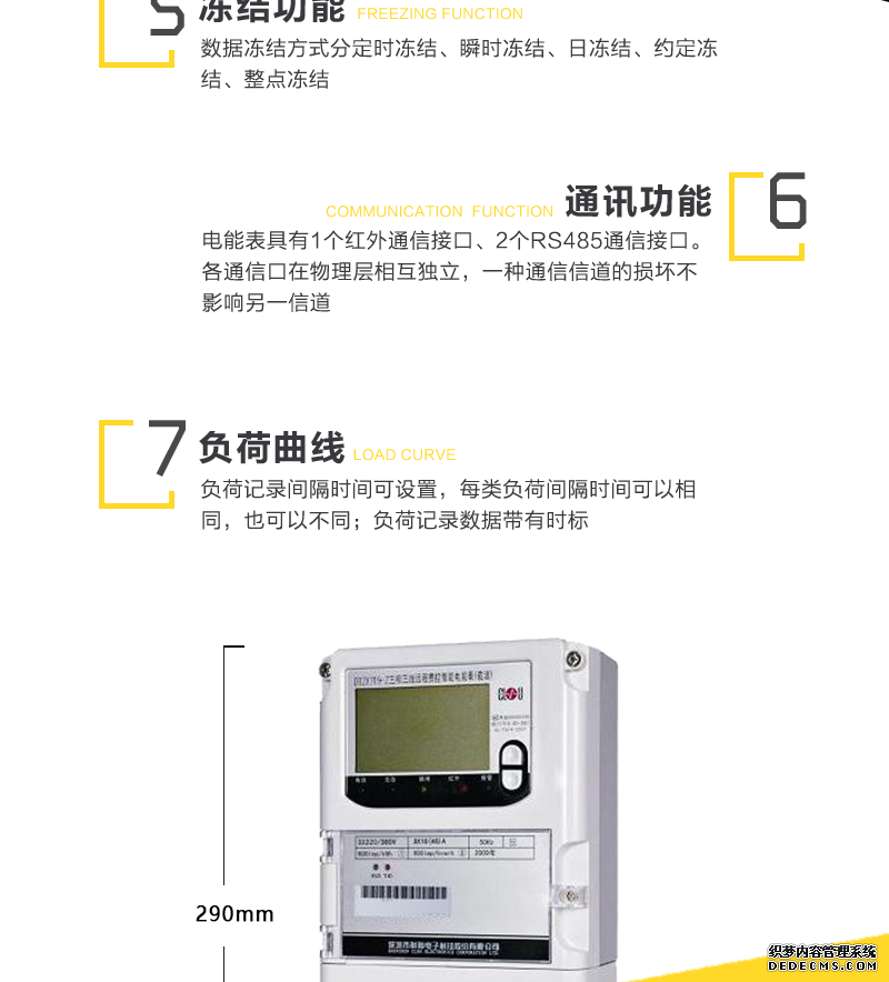 - 主要功能:有功,功率因素,有功功率,無功功能,四象限無功,電壓,電流,載波,費控,需量