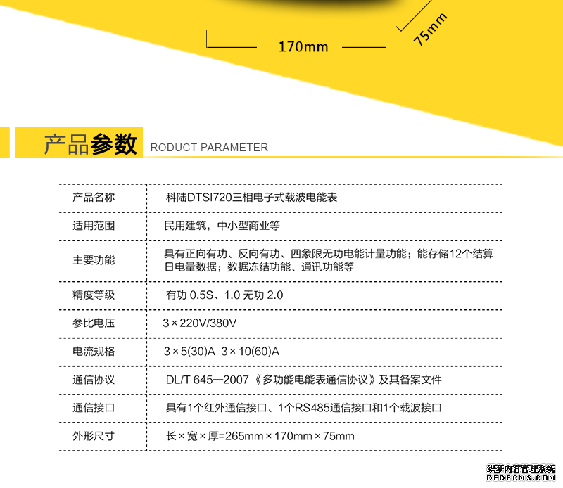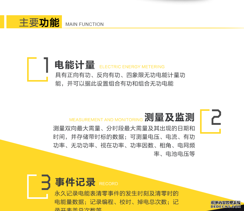 - 主要功能:有功,功率因素,有功功率,無功功能,視在功率,四象限無功,電壓,電流,載波,需量