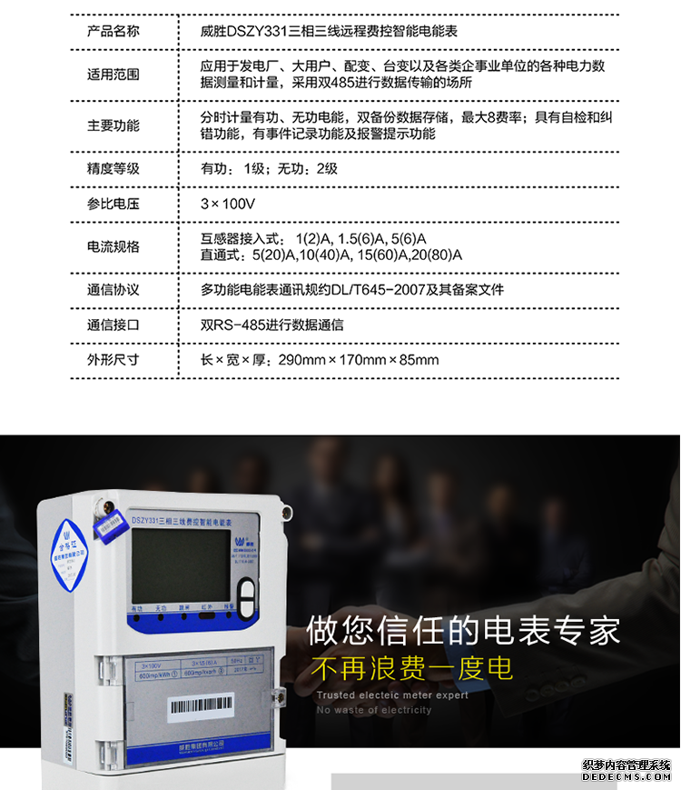 長沙威勝DSZY331三相三線遠程費控智能電能表