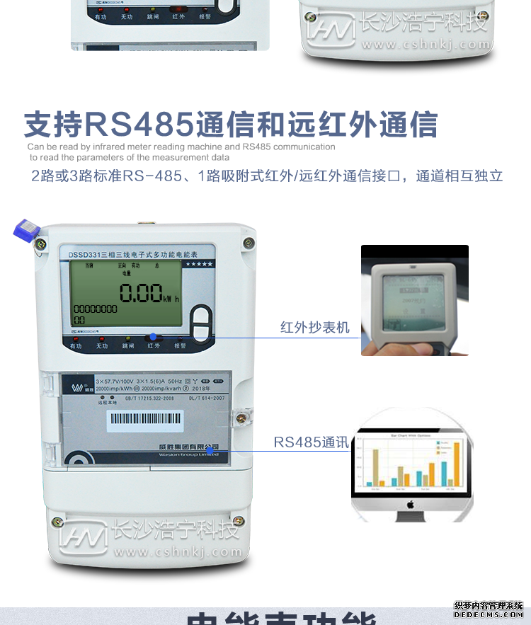 - 主要功能:有功,功率因素,有功功率,無功功能,視在功率,四象限無功,電壓,電流,事件報警,需量